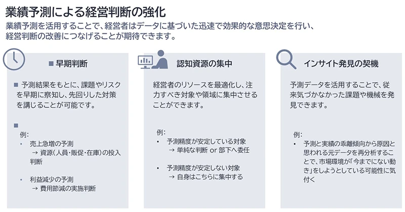 当然、予測は精度の高いものでなければならないが、単に精度が高ければ適切な意思決定につながるというものでもない。意思決定に貢献する業績予測とは、どのようなものか──。そのことを念頭に置きながら、AI(機械学習)による予測モデルの構築に取り組んできた。