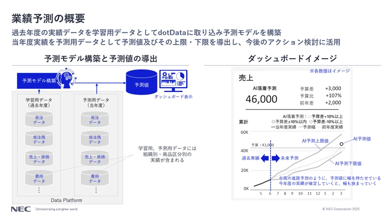 業績予測を本格的に意思決定に活用する中で、業績の伸び悩みを示す予測値が出た場合には、要因分析によって、的確なてこ入れのヒントを得ることができる。NECのdotDataを用いた取り組みは、データドリブン経営を次のステージへ押し上げる大きな可能性を示している。