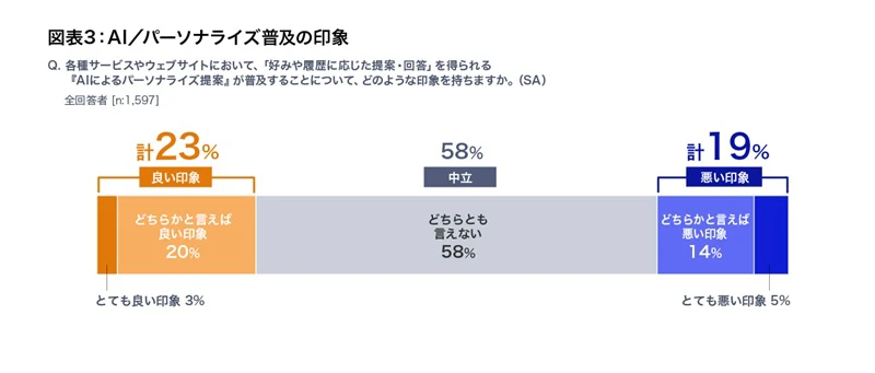 次は、図表3でご紹介したAI/パーソナライズの普及に対して「良い印象」「悪い印象」と答えた消費者心理を追いかけてみます。