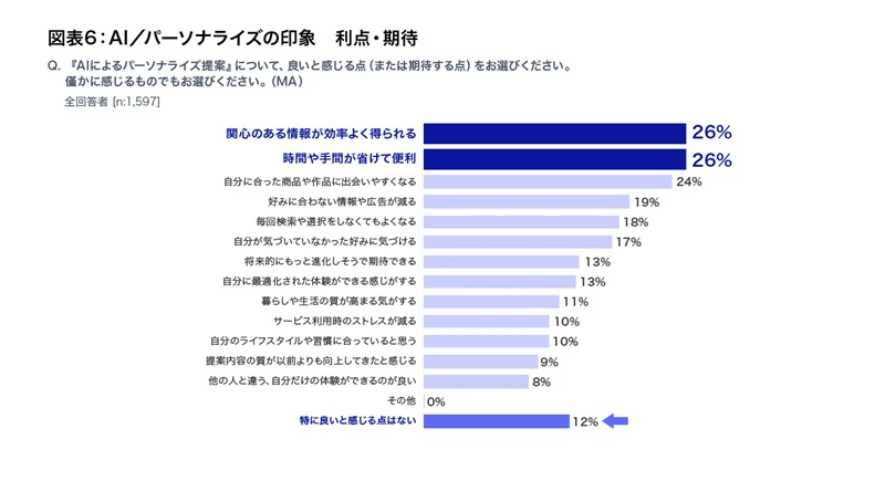 縦軸:AI/パーソナライズの「利点・期待」【AI/パーソナライズの普及に「良い印象」を持っている方の回答】