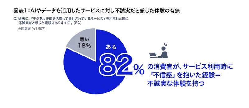 図表1と2は「AIやデータを活用したサービスに対し不誠実だと感じた体験」に関する調査結果です。今回は、この調査結果の詳細を見ていくことからはじめましょう。