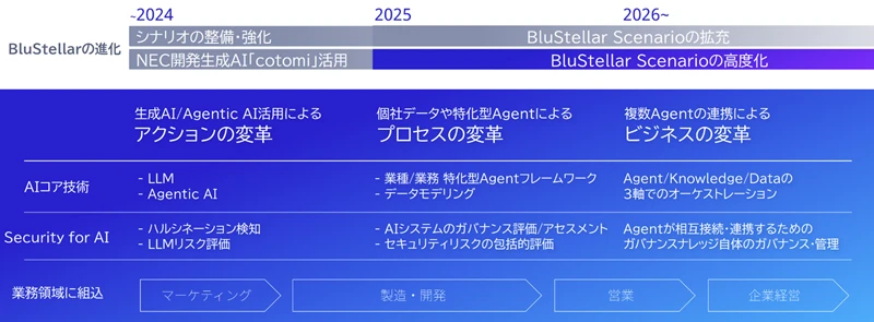 NECは、Miroとの共創、そしてcotomi Actによる実行自動化を融合させることで、BluStellarの進化を一層加速させ、AIネイティブ時代における企業変革の新たなスタンダードを提示していく。