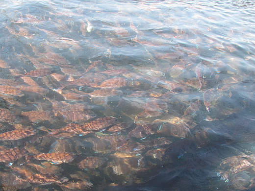 水域情報は、水産課と愛南漁業協同組合の協力で毎朝ネット上に情報をアップする。海水温や酸素・塩分濃度のほか、赤潮のチェックも重要だ。プランクトンの異常発生で海水が着色する現象だが、きれいな愛南町の海でもほぼ毎年発生する。発生した場合は生簀を避難させ、餌やりを止めるしかない。餌をやった場合、生け簀の魚が死んでしまいやすいからだ。