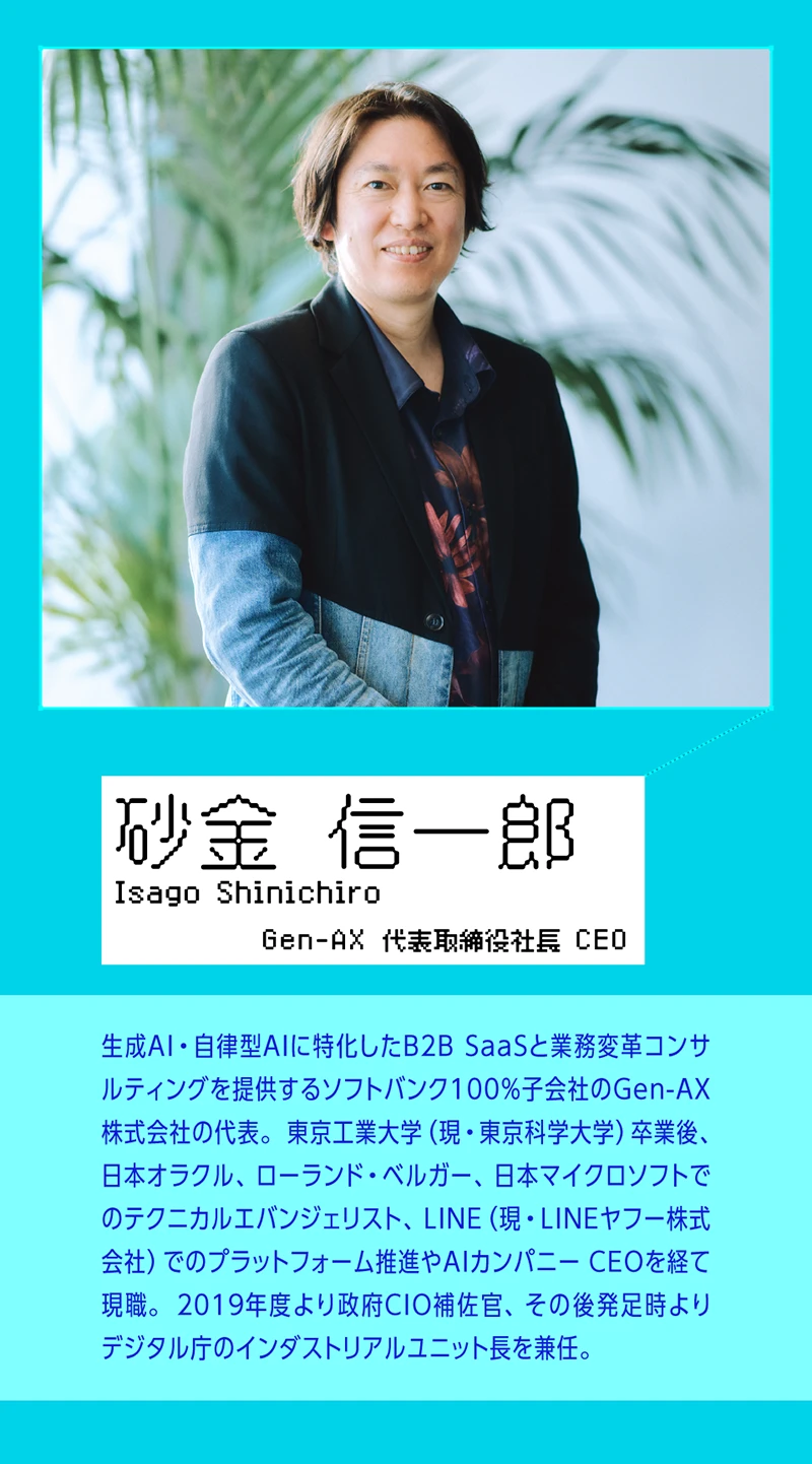 日本マイクロソフトやLINEヤフーでDX・AI事業をリードした実績を持ち、現在はGen-AXの代表取締役社長CEOを務める砂金信一郎氏は、デジタルエシックスについて、「技術を社会に浸透させるために、開発者が一丁目一番地で向き合うべきもの」と語る。